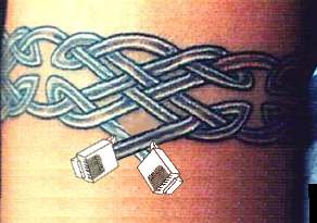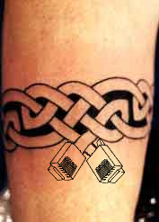 A Celtic knotwork armband with the ends coming off into RJ45 jacks. poorly photoshopped idea and another (and without bloo).